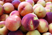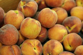 Widok z bliska na organiczne brzoskwinie w supermarkecie.