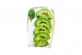 widok z góry świeże grzanki ogórkowe z nasionami, liście mięty na białym tle, zdjęcie panoramiczne