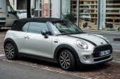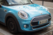 Zdjęcie "Rosja Moskwa 2019-06-17 Zielony samochód Mini Cooper stoi na ulicy europejskiego miasta. Podróże koncepcyjne w Europie razem na kompaktowym modnym samochodzie." może być wykorzystywane do celów osobistych i komercyjnych zgodnie z warunkami zakupionej licencji Royalty-free. Obraz jest dostępny do pobrania w jakości wysokiej rozdzielczości do 5760x3840.