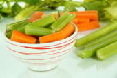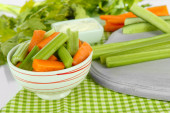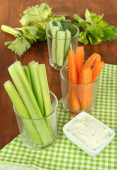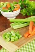 świeżego selera zielony z warzywami na stół szczegół