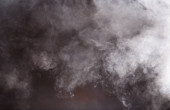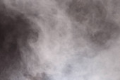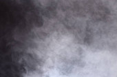 Gęste puszyste puszki białego dymu i mgły na czarnym tle, Abstrakcyjne chmury dymne, zamazane ruchy, nieostre intencje i wysoki kontrast niskiej ekspozycji, przestrzeń na kopiowanie logo tekstu