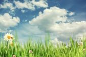 Zielona trawa z kwiaty daisy