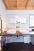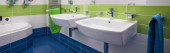 łazienka z lustrem ułożone jak caterpillar, washbowls i zielonej trawie wzór płytki w przedszkolu