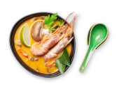 Tom Yum tradycyjnej tajskiej zupy z owoców morza, grzyby, mleko kokosowe i gorące przyprawy. Z zieloną herbatą
