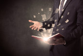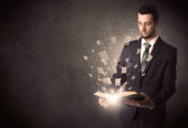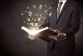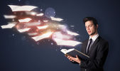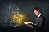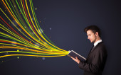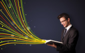 przystojny mężczyzna, czytanie książki, podczas gdy kolorowe linie są coming out