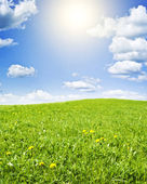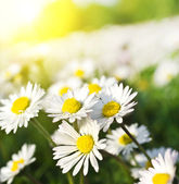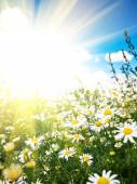 pole stokrotek i błękitne niebo