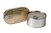 Puszki cyny izolowane na białym