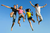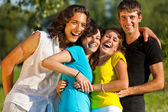 czterech przyjaciół, obejmując, utworzyła koło i pochylił nad