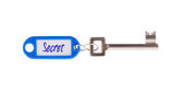 klucz z pustą etykietę na białym tle