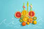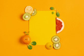 Skład owoców cytrusowych, pomarańczy i cytryny na żółtym tle
