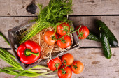 Zdjęcie "Jasne, soczyste, dojrzałe pomidory na gałęzi leżą wokół keczupu w misce sosu na drewnianym stole z ziołami, czosnkiem, gorącymi i ziele angielskie." może być wykorzystywane do celów osobistych i komercyjnych zgodnie z warunkami zakupionej licencji Royalty-free. Obraz jest dostępny do pobrania w jakości wysokiej rozdzielczości do 5760x3840.