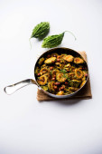 Kaccha Papita Sabji lub Raw Papaya Sabzi, serwowane w karahi lub miski. ukierunkowanie selektywne