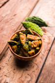 Kaccha Papita Sabji lub Raw Papaya Sabzi, serwowane w karahi lub miski. ukierunkowanie selektywne