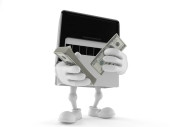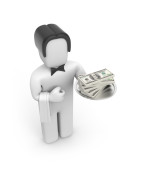 mężczyzna oferujący wiele nas dolarów - na białym tle