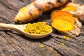 Świeża kurkuma na drewnianym stole Koncepcja tajlandzkiego zioła.