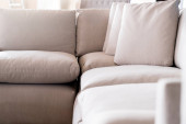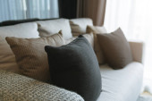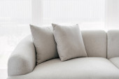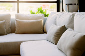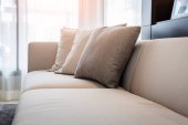 Zdjęcie "współczesne wnętrze salonu z częścią sofy w słoneczny dzień i biały zasłona wnętrza koncepcja tła" może być wykorzystywane do celów osobistych i komercyjnych zgodnie z warunkami zakupionej licencji Royalty-free. Obraz jest dostępny do pobrania w jakości wysokiej rozdzielczości do 5760x3840.