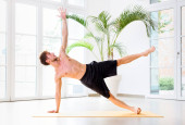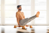 Zdjęcie "Muskularny sportowiec robi planszę gimnastyczną na niskich równoległych belkach podłogowych w jasnej, przestronnej siłowni z przestrzenią do kopiowania koncepcji zdrowia i fitness" może być wykorzystywane do celów osobistych i komercyjnych zgodnie z warunkami zakupionej licencji Royalty-free. Obraz jest dostępny do pobrania w jakości wysokiej rozdzielczości do 5760x3840.