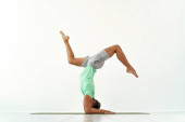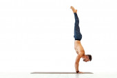 Zdjęcie "Muscular shirless człowiek robi power handstand push up na niskich szczeblach przeciwko jaskrawo białe okna wewnątrz" może być wykorzystywane do celów osobistych i komercyjnych zgodnie z warunkami zakupionej licencji Royalty-free. Obraz jest dostępny do pobrania w jakości wysokiej rozdzielczości do 5760x3840.