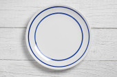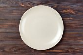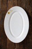 Jednorazowa płyta papierowa na drewnianym tle, widok z góry