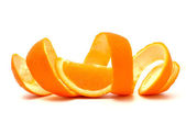 Organiczna skórka pomarańczy oddzielona na białym tle. Soczysta pomarańczowa skóra.
