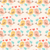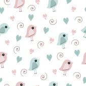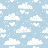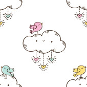 Słodkie ptaszki latają nad chmurami. Płynny wzór z ręcznie rysowanych elementów do projektowania dla dzieci.