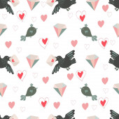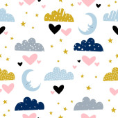 Zdjęcie "Słodkie ptaszki latają nad chmurami. Płynny wzór z ręcznie rysowanych elementów do projektowania dla dzieci." może być wykorzystywane do celów osobistych i komercyjnych zgodnie z warunkami zakupionej licencji Royalty-free. Obraz jest dostępny do pobrania w jakości wysokiej rozdzielczości do 5760x3840.