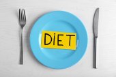 niewielka część żywności na duży talerz na drewniany stół szczegół