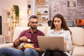 Chłopak przykrywa oczy dziewczyny podczas oglądania horroru