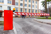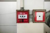 nowoczesna osłona przeciwpożarowa z gaśnicą na ścianie parkingu