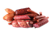 Zdjęcie "Smaczne kiełbaski na białym tle. Produkt mięsny" może być wykorzystywane do celów osobistych i komercyjnych zgodnie z warunkami zakupionej licencji Royalty-free. Obraz jest dostępny do pobrania w jakości wysokiej rozdzielczości do 5760x3840.