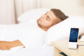 kobieta umieścić telefon komórkowy do ładowania na przestrzeni bezprzewodowego ładowania ksero