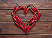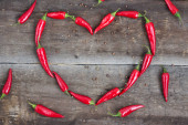 Zdjęcie "Od czerwonej gorącej papryki chili wyłożone postać w kształcie serca z oczami. Drewniane tło z miejscem na tekst" może być wykorzystywane do celów osobistych i komercyjnych zgodnie z warunkami zakupionej licencji Royalty-free. Obraz jest dostępny do pobrania w jakości wysokiej rozdzielczości do 5760x3840.