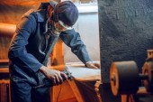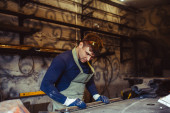Skater in process of making his own skateboard, longboard - open business concept