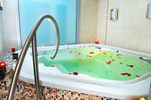 część łazienki z płatków róży, pływających w wodzie