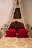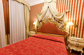 średniowiecznym stylu sypialni z baldachimu łóżka na szeroki kąt widzenia