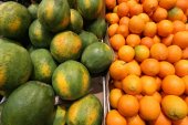 świeże owoce i warzywa są sprzedawane na bazarze w Jerozolimie, stolicy Izraela
