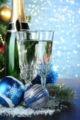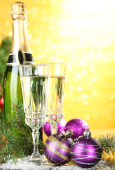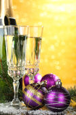 butelkę szampana z kulek szkła i Boże Narodzenie na tle choinki