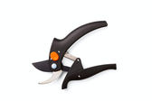 Nowiutkie nożyce do przycinania izolowane na białym tle. Sprzęt ogrodniczy wyciąć studio strzał.