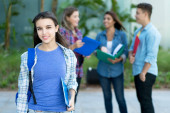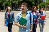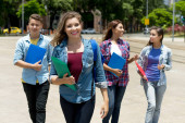 cheerleaderka amerykańska studentka z grupą młodych dorosłych latem w mieście