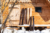 Zdjęcie "Domek Zimą śnieg z zewnątrz kijki narciarskie" może być wykorzystywane do celów osobistych i komercyjnych zgodnie z warunkami zakupionej licencji Royalty-free. Obraz jest dostępny do pobrania w jakości wysokiej rozdzielczości do 5760x3840.