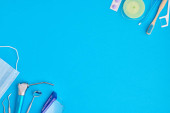 Zdjęcie "Narzędzia dentystyczne na niebieskim tle widok z góry ksero przestrzeń płaska leżał. Pielęgnacja zębów, higiena jamy ustnej i koncepcja zdrowia. " może być wykorzystywane do celów osobistych i komercyjnych zgodnie z warunkami zakupionej licencji Royalty-free. Obraz jest dostępny do pobrania w jakości wysokiej rozdzielczości do 5760x3840.