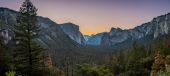 Dolina Parku Narodowego Yosemite z Tunnel View. Widok wygląda na wschód i obejmuje otaczające funkcje, takie jak El Capitan po lewej stronie, Half Dome na osi i Bridalveil Fall po prawej stronie.