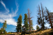 Zdjęcie "Sosny z pięknym krajobrazem na Tioga Pass Road w Parku Narodowym Yosemite. Kalifornia, Stany Zjednoczone." może być wykorzystywane do celów osobistych i komercyjnych zgodnie z warunkami zakupionej licencji Royalty-free. Obraz jest dostępny do pobrania w jakości wysokiej rozdzielczości do 5760x3840.