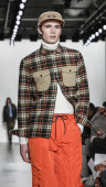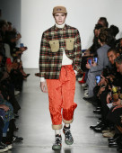 Nowy Jork, Nowy Jork - 05 lutego: Modelka spaceruje po pasie startowym ay pokaz mody Todd Snyder podczas New York Fashion Week w Pier 59 Studios 5 lutego 2020 w Nowym Jorku.
