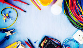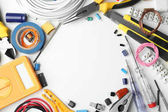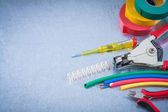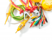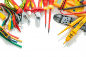 duży zestaw narzędzi elektrycznych izolowanych na białym tle
