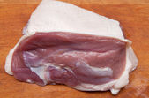 Świeży niegotowany filet z indyka na drewnianej desce do krojenia. Surowe piersi indyka na drewnianej desce do krojenia, widok z bliska. Filet indyczy na drewnianej desce. Eko mięso, zdrowe mięso, fotografia żywności. Gotowanie