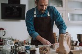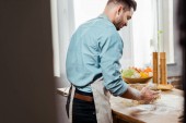 syn ze starszym ojcem gotuje w kuchni.