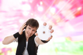 Młody człowiek słuchający muzyki.