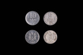 Zestaw monet Kazachstanu 2000 rok, 1510 tenge. Odizolowany obiekt na czarnym tle.