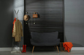 Zdjęcie "Wnętrze przedpokoju ze stylowymi meblami, ubraniami i akcesoriami" może być wykorzystywane do celów osobistych i komercyjnych zgodnie z warunkami zakupionej licencji Royalty-free. Obraz jest dostępny do pobrania w jakości wysokiej rozdzielczości do 5760x3840.